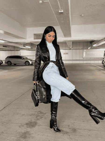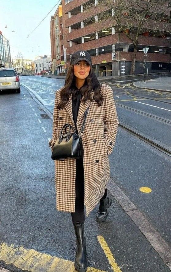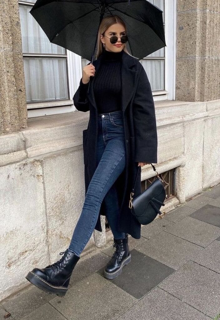 Keep it classic with a black long overcoat paired with jeans and boots for a chic and effortless baddie look.