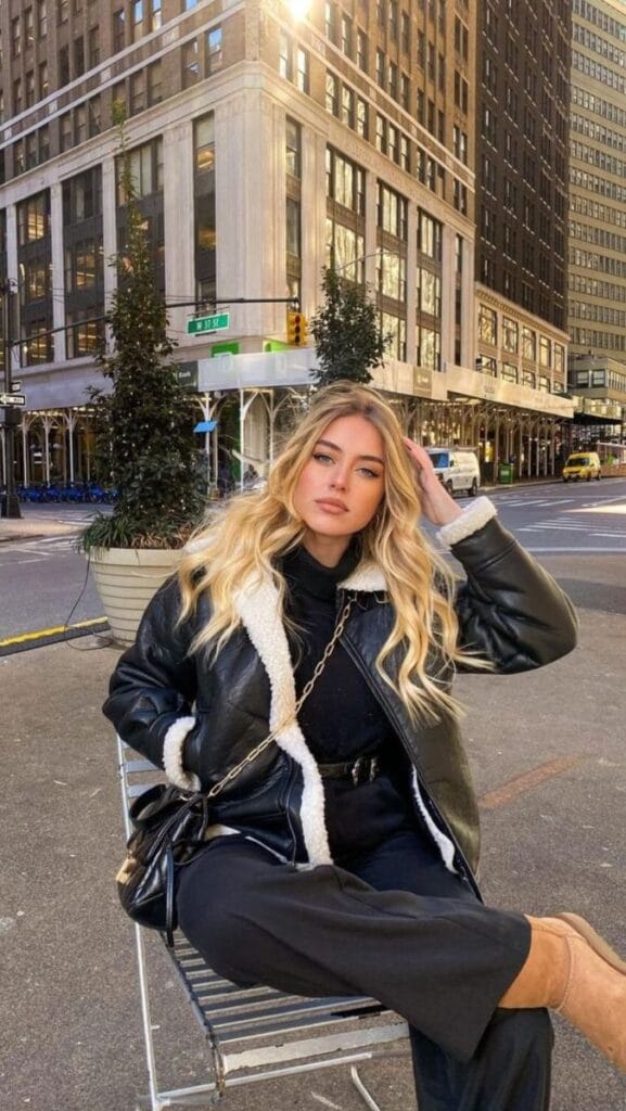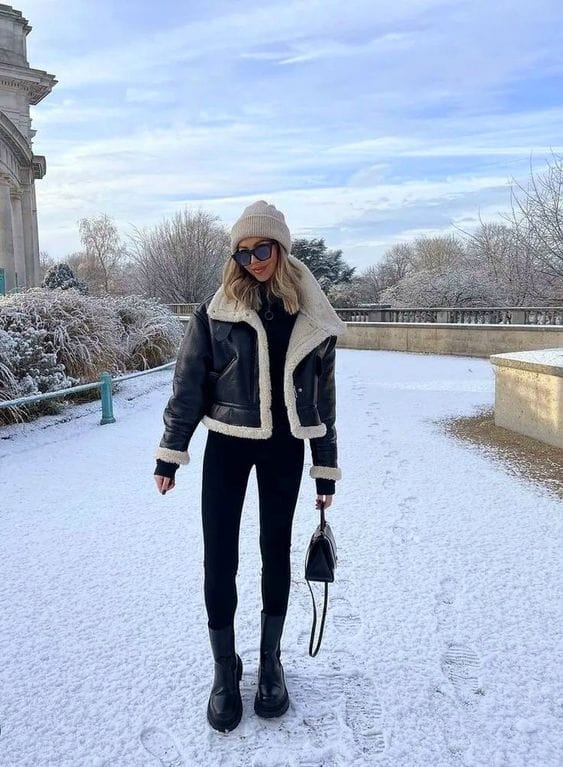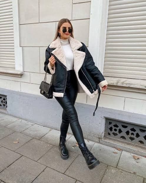 Channel your inner baddie with an aviator jacket paired with black leather pants and boots for an effortlessly cool look.