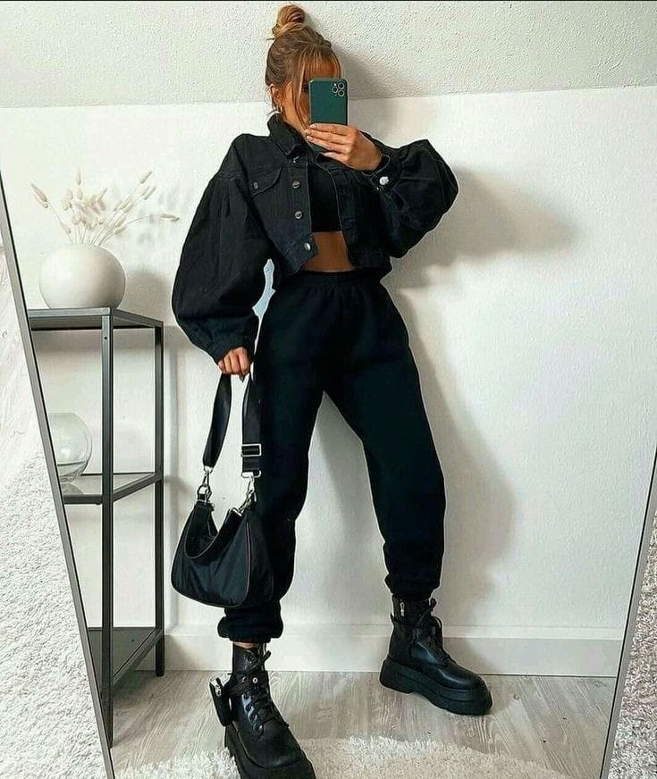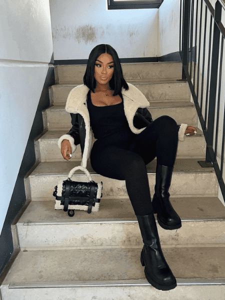 Keep it sleek and edgy with a black leather jacket paired with matching black boots for a timeless baddie look.