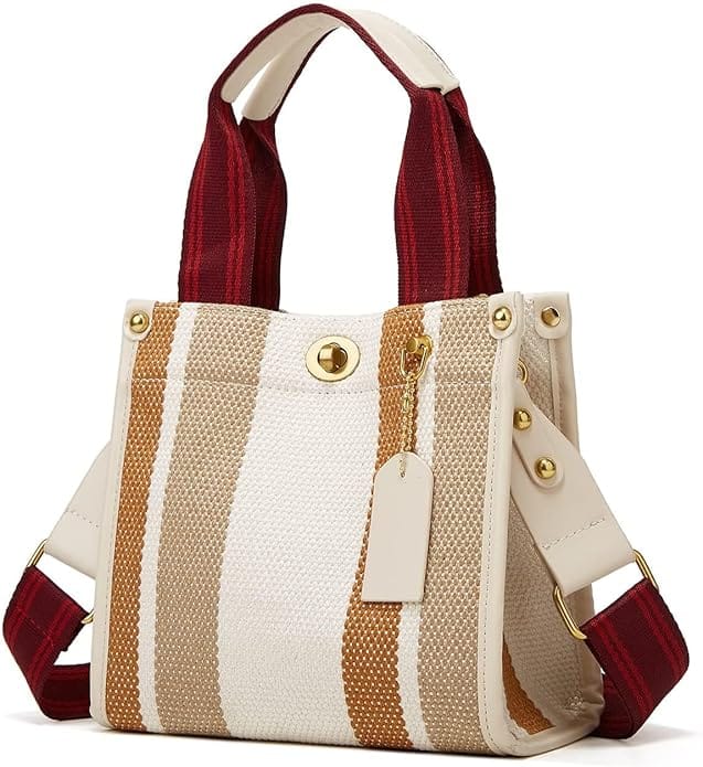 Brighten up your beach days with this yellow and brown stripe canvas shoulder bag, promising sunny vibes wherever you go.