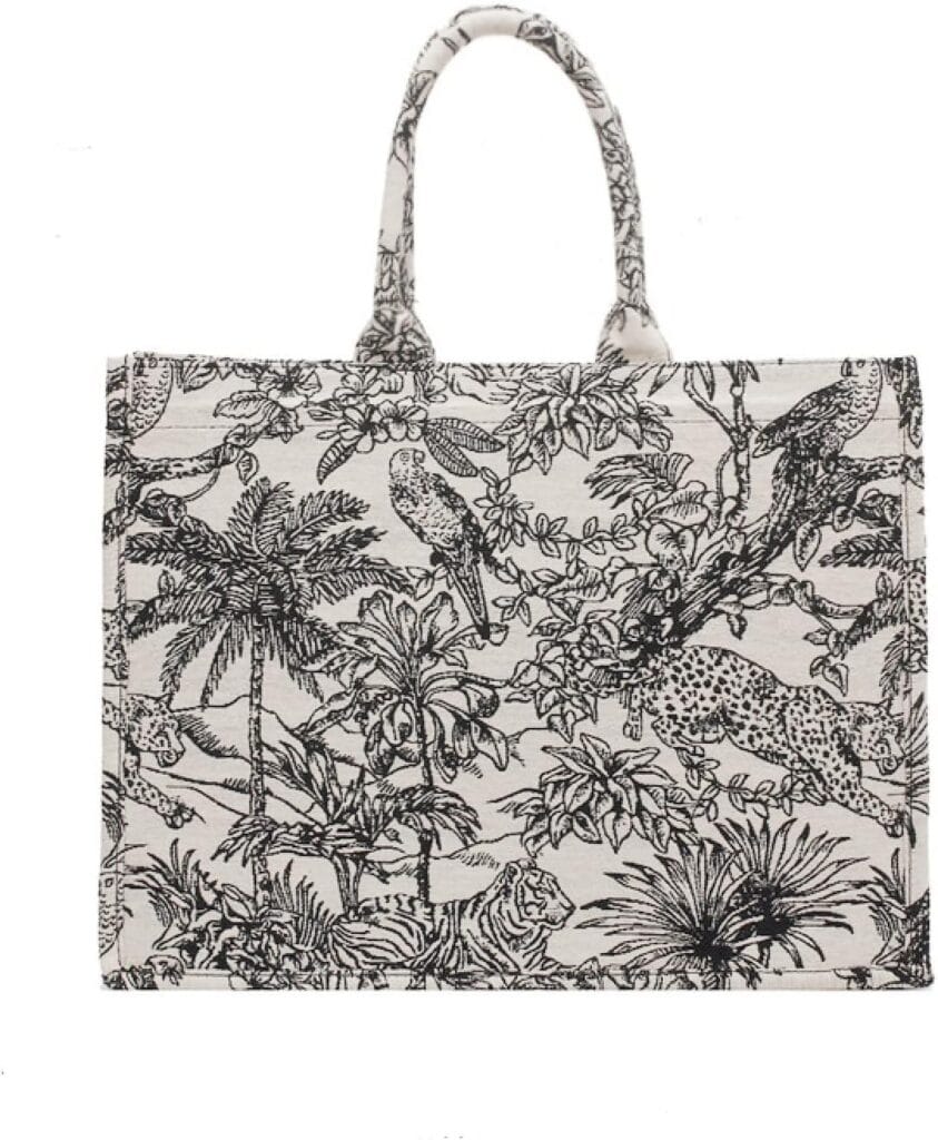 1. Cotton Linen Retro Tote: Jacquard Embroidery, Large Capacity, One-Shoulder Handbag