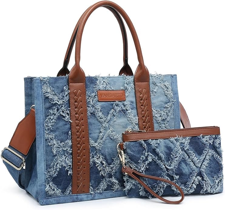 Add a touch of Southwestern charm to your beach ensemble with this denim Aztec top handle satchel tote bag. Perfect for channeling laid-back vibes while exploring coastal hideaways.