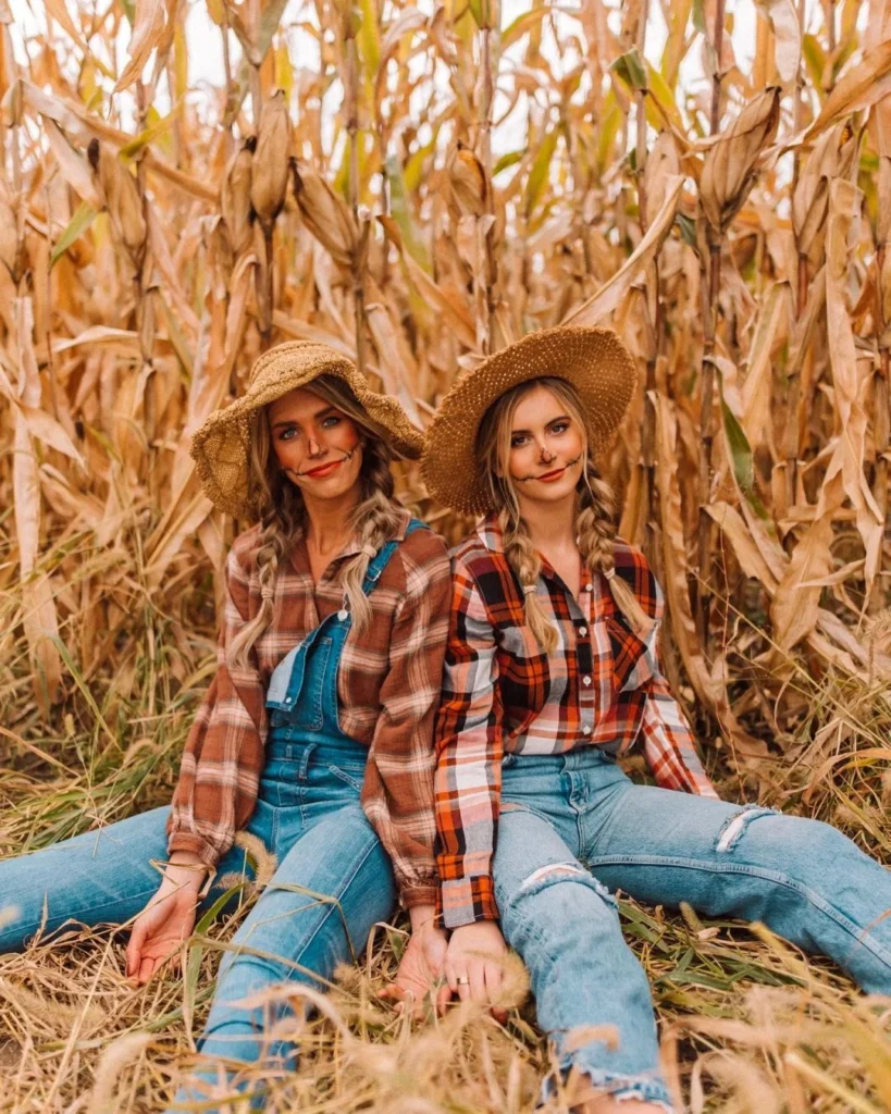 With straw hats, patched clothing, and a touch of eerie makeup, you and your best friend can create a perfectly creepy yet charming costume.