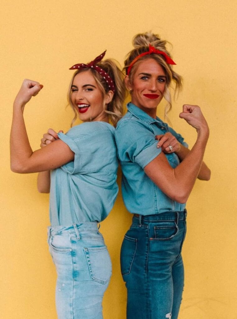 Channel the iconic “We Can Do It!” attitude with polka dot bandanas and work overalls, proving you and your bestie can take on any Halloween challenge.