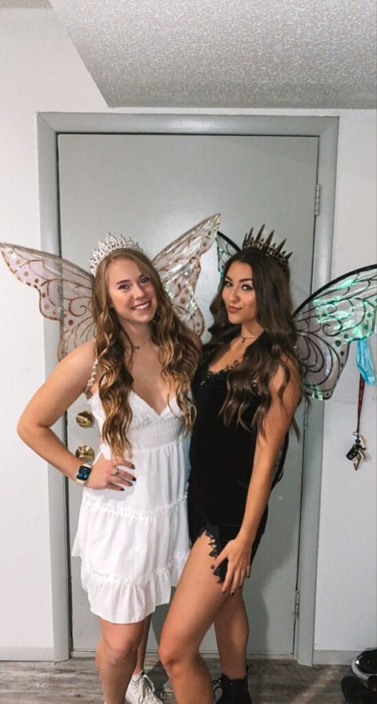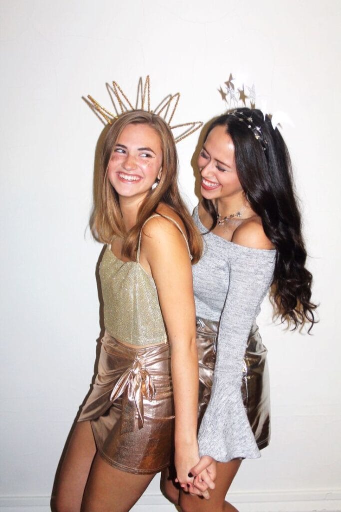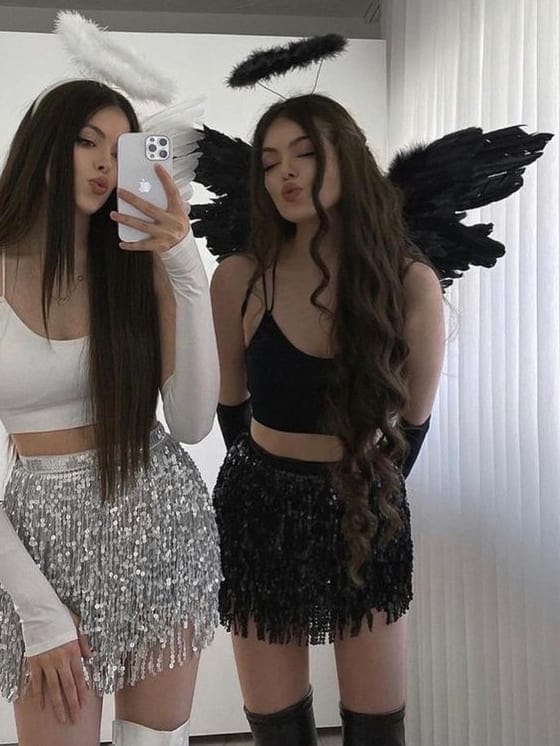 With flowing white gowns, sparkling wings, and a touch of divine elegance, you and your bestie will shine as the most ethereal and charming pair of the night.