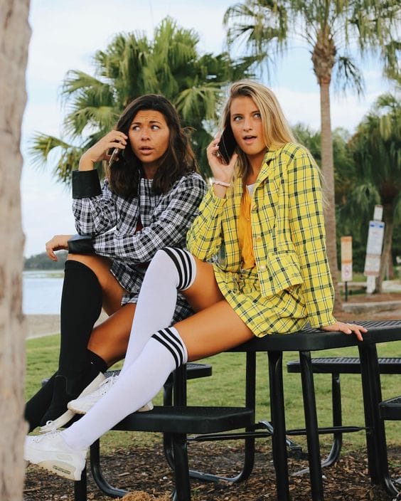 As if! Channel your inner Cher and Dionne from Clueless with plaid skirts, knee-high socks, and all the ā€˜90s attitude.