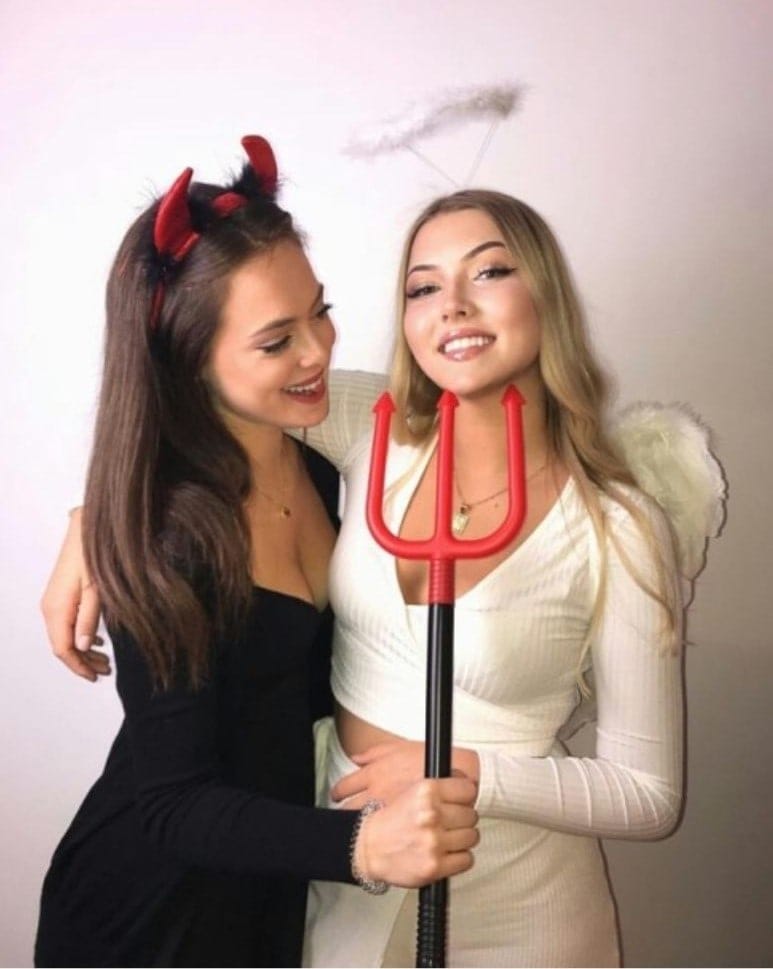 One of you can be the sweet, halo-wearing angel, while the other rocks the horns and pitchfork as the devilish counterpart—together, you’ll be an unstoppable pair.