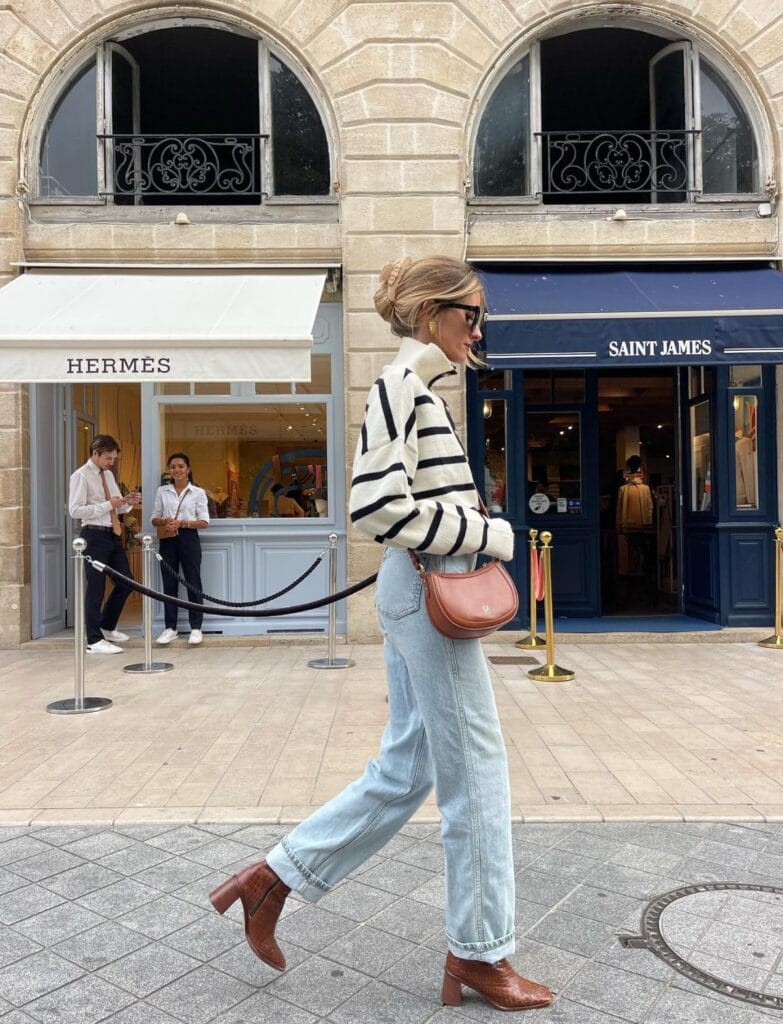 31. Parisian Striped Sweater & Relaxed Denim