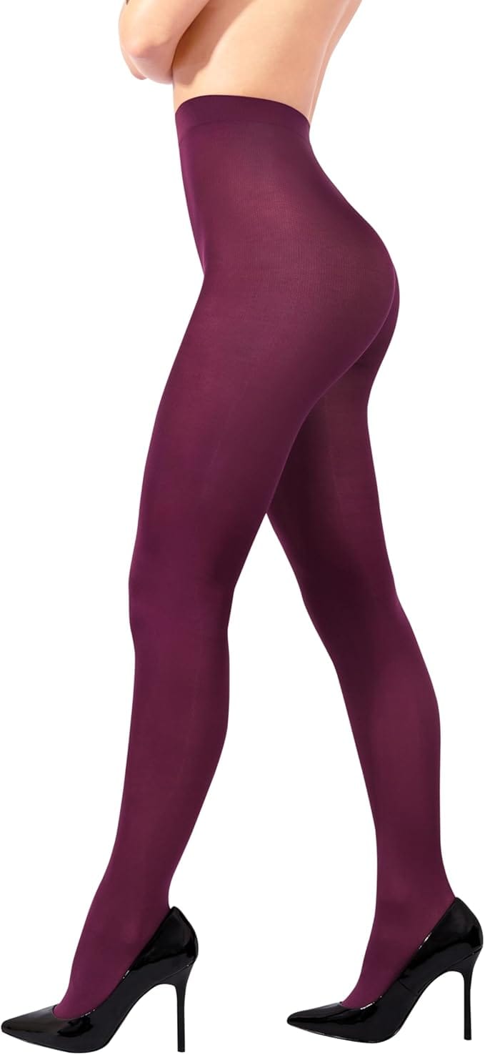 A streamlined burgundy overcoat paired with a black turtleneck and sheer tights is the epitome of minimalistic elegance.