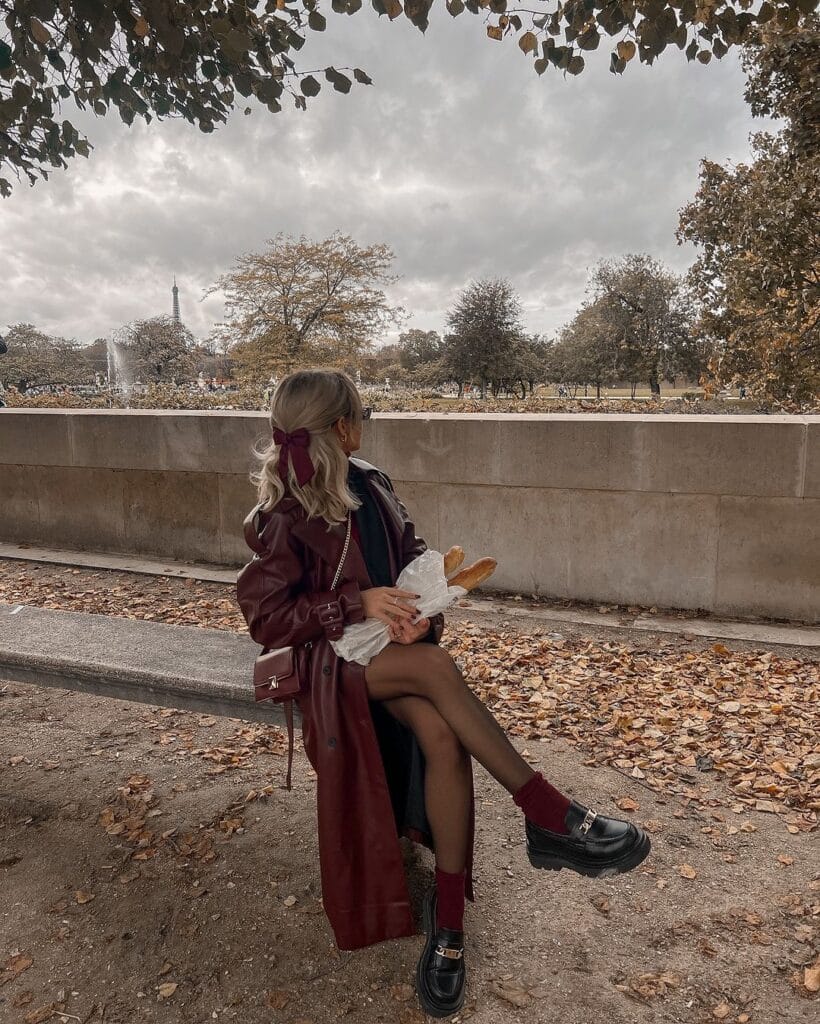 13. Burgundy Trench with Parisian Charm