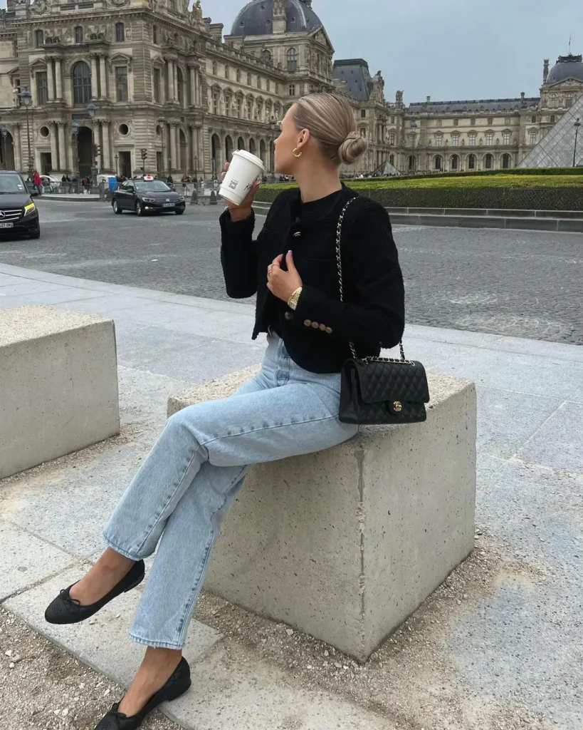 A black cardigan paired with jeans is the epitome of effortless style. Perfect for those casual days out, this look combines simplicity with a touch of elegance.