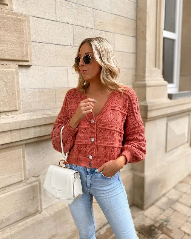 12. Peach Cardigan and Jeans: A Perfect Casual Combo