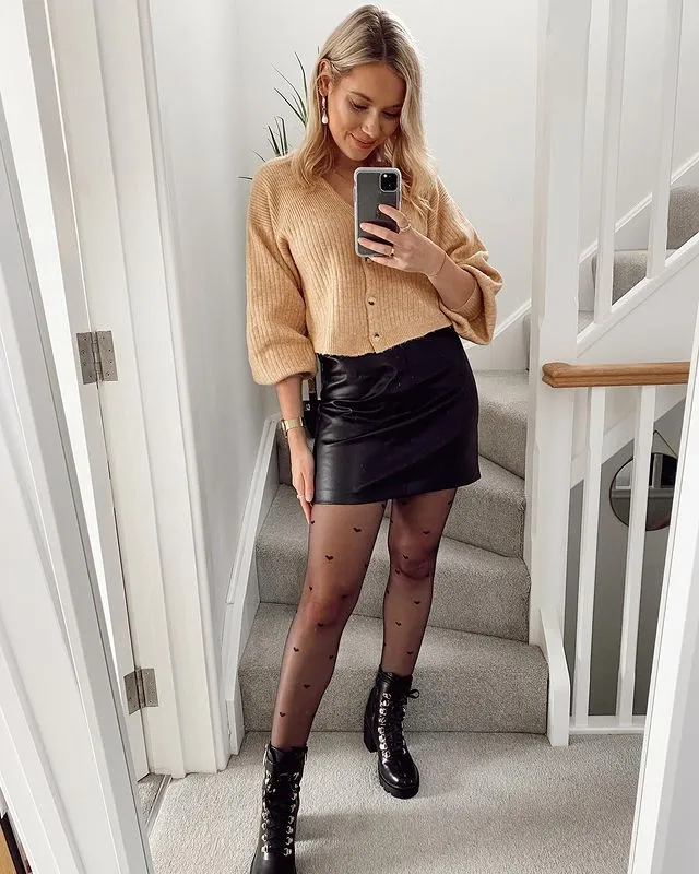 13. Cardigan Chic: Elevate Your Look with a Leather Miniskirt