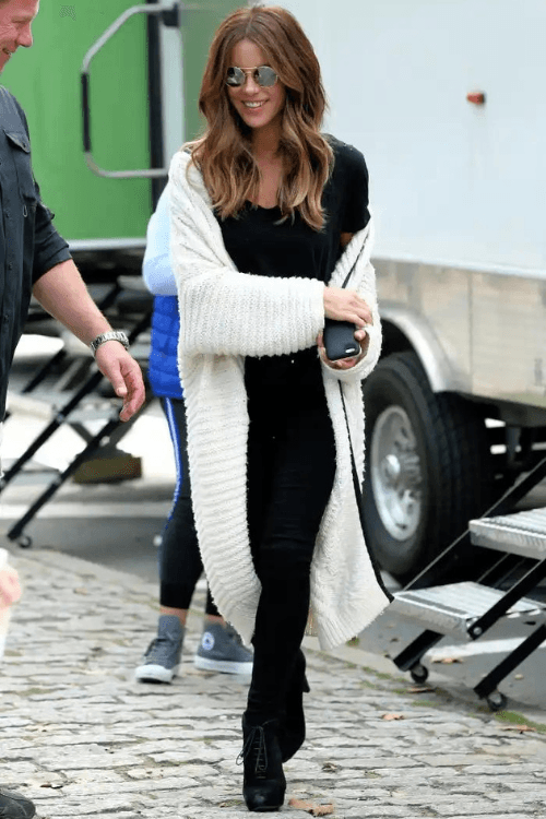 33. Long Cardigan Over a Sleek Black Outfit