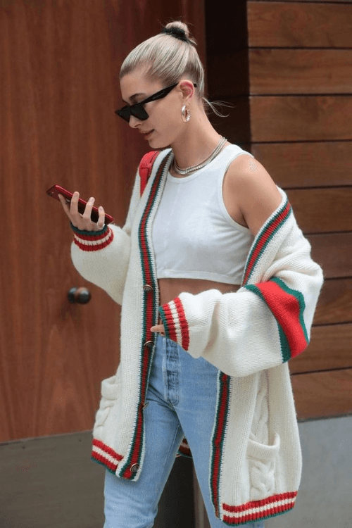 37. Casual Cool: Oversized Cardigan Over a Crop Top with Denims