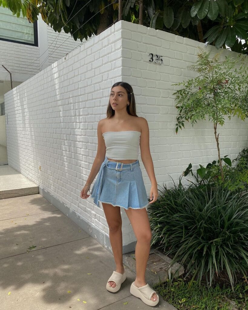 34. Casual Flair: Sleeveless Top Paired with a Denim Short Skirt for Easygoing Vibes