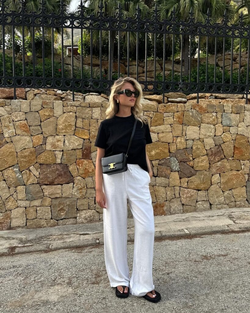 12. Monochrome Chic: Elevating Casual Cool with a Black Tee and White Wide Leg Pants