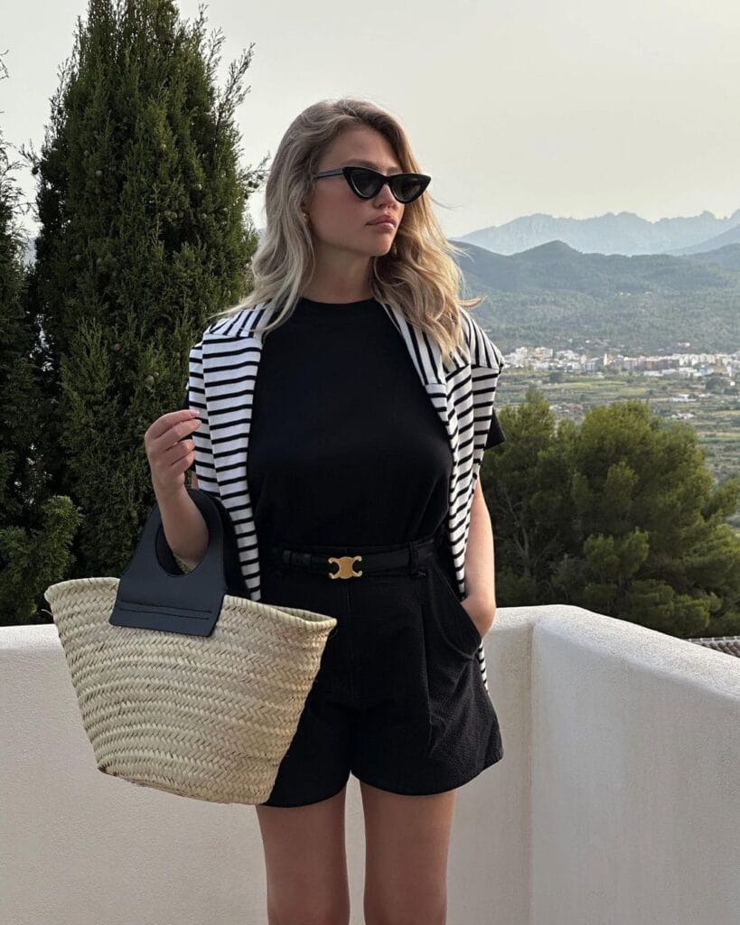 11. Effortless Edge: Pairing a Black Top with Stylish Shorts for Summer Comfort