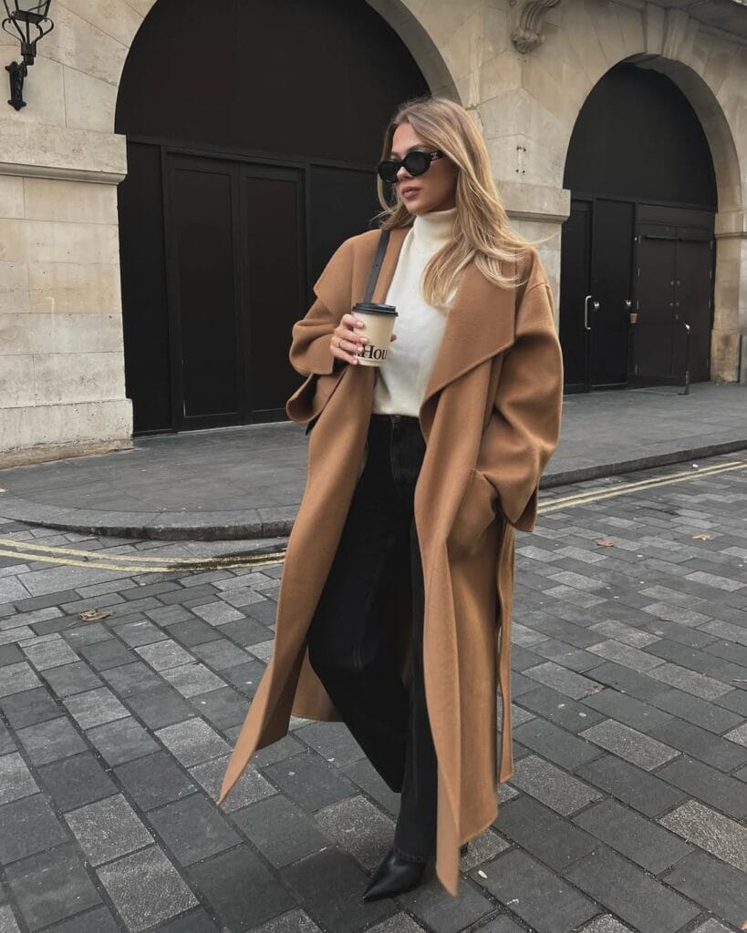 12. Classic Camel Wool Coat and Monochrome Neutrals