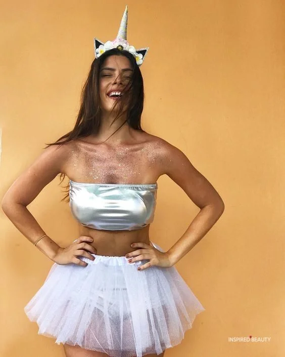 A sparkly pastel outfit, a unicorn horn headband, and lots of glitter will transform you into a creature of pure fantasy. This look is all about the whimsy, so don’t hold back on the sparkle and shine!