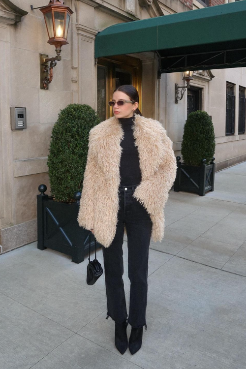 @ indiaamoonClassic denim paired with a plush fur jacket is a match made in style heaven. Complete the look with knee-high boots and a bold red lip for that effortlessly cool winter aesthetic. A crossbody bag will elevate this look even further.