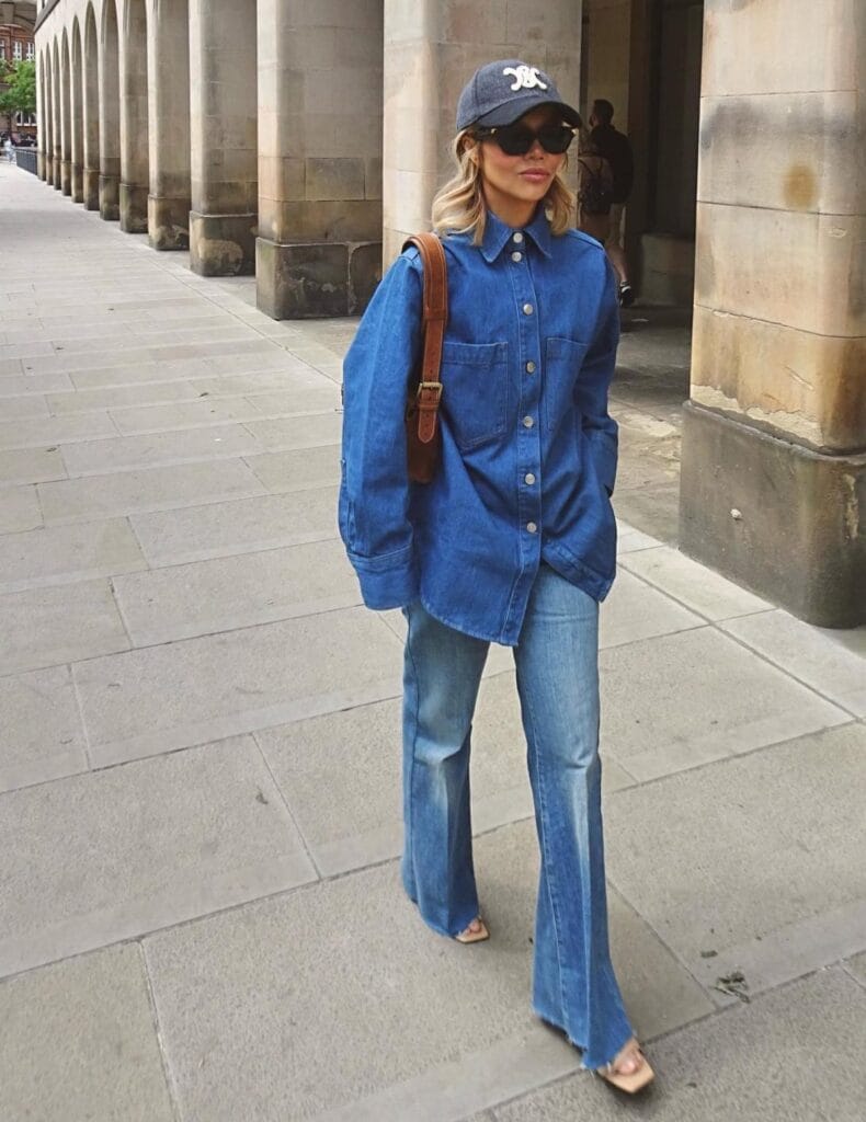 7. Casual Cool Oversized Denim Shirt and Flared Jeans