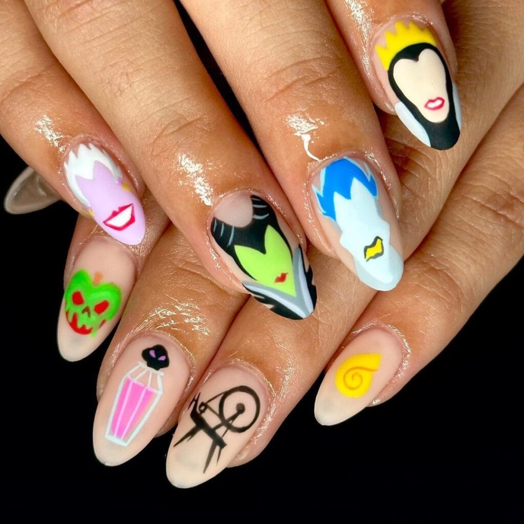 Whether itās Maleficentās dramatic horns, Ursulaās deep purple hues, or Cruellaās iconic black-and-white style, these nails let you channel your favorite baddies in the most stylish way. Add some edgy designs, glam details, or villainous quotes for a manicure thatās wickedly wonderful!