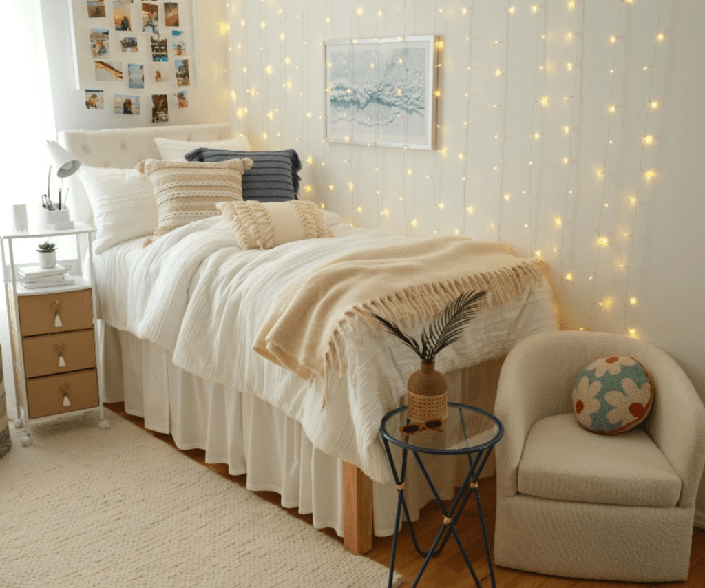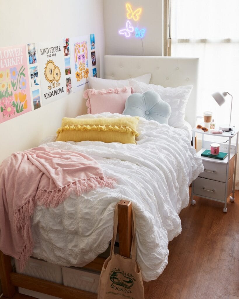 With these touches, your bed will be both stylish and functional, making your dorm room feel like home.
