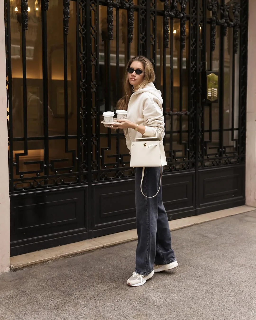 I love an oversized hoodie moment that still manages to look intentional — and this is exactly that. The cream tone elevates what could be a simple casual outfit into something that reads as effortlessly cool.
