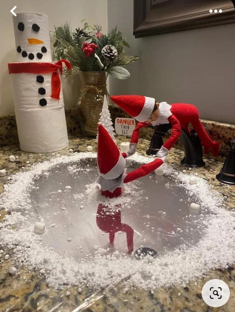 Place your elf on a cookie sheet or mirror, pretending theyāre ice skating. Add a note: āCareful! Youāre on thin ice!ā