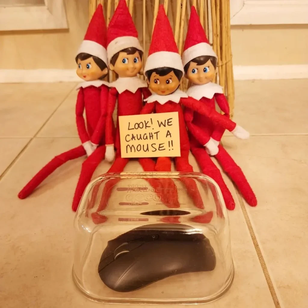 Pair your elf with a toy mouse, staging them as mischievous partners in crime. Maybe theyāve nibbled through some pretend cheese or left a trail!