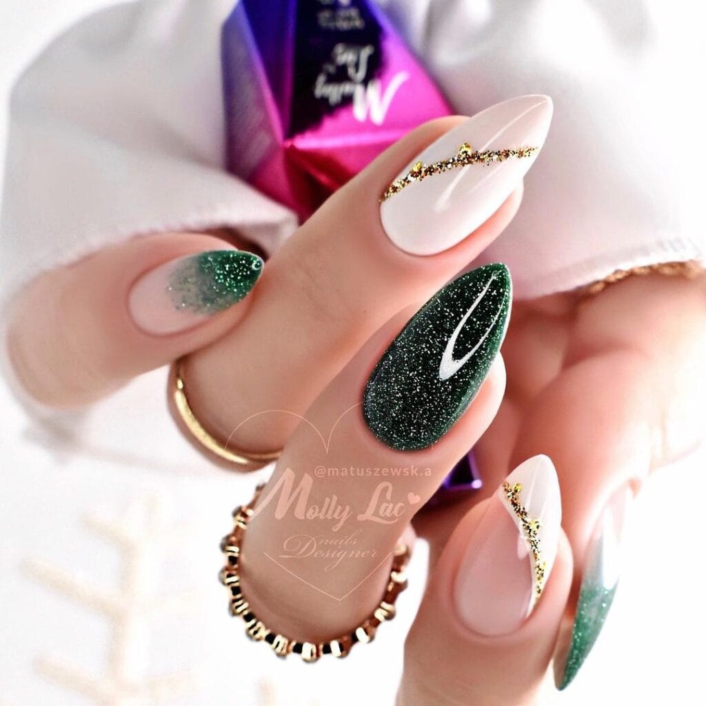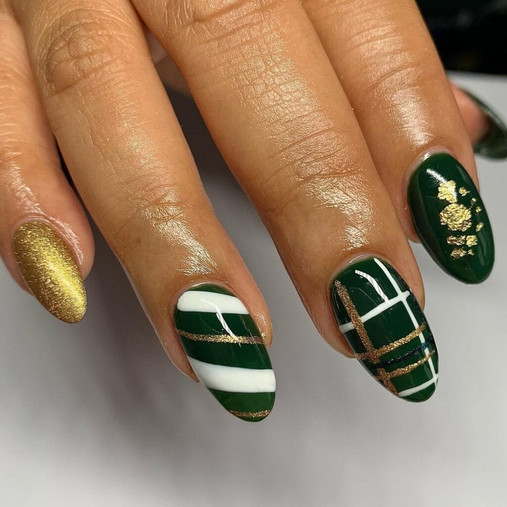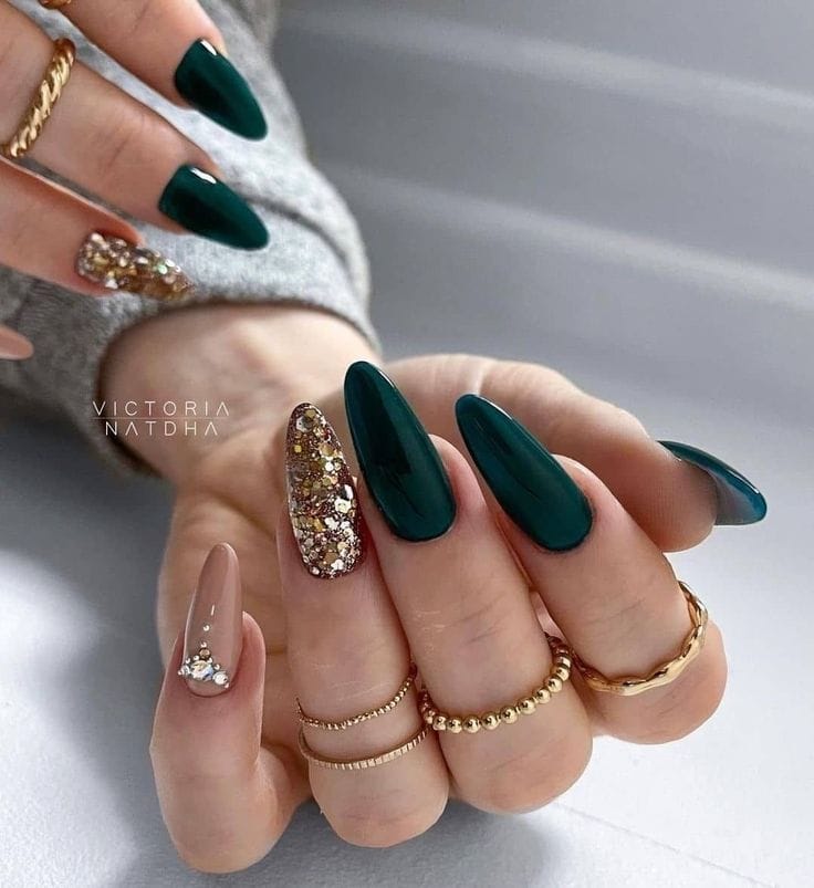 9. Emerald Elegance Meets Golden Glamour: Green & Gold Fusion Nails