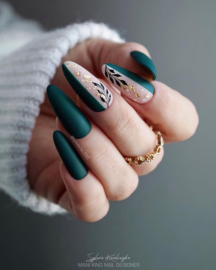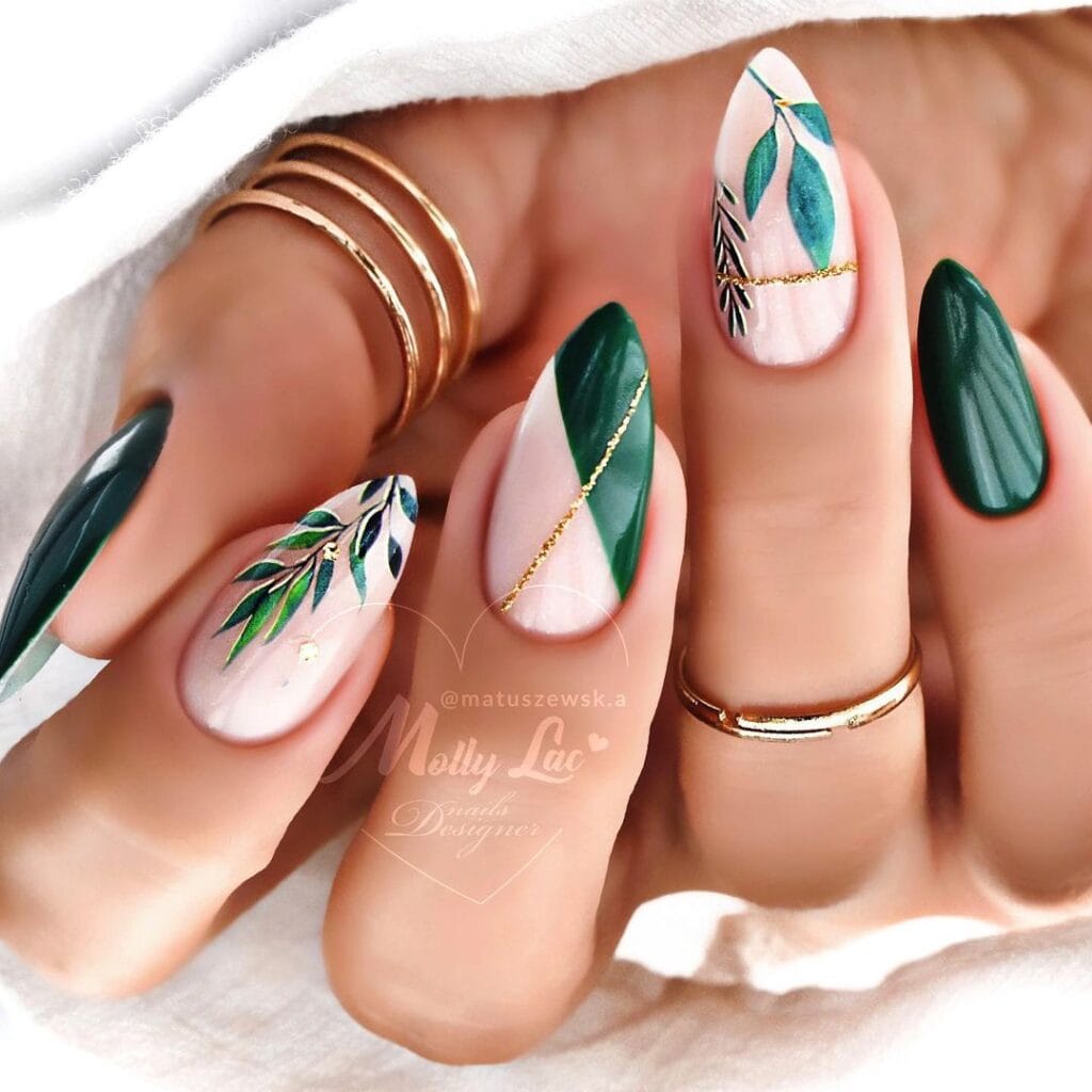4. Nature’s Embrace: Emerald Nails with Leafy Inspiration