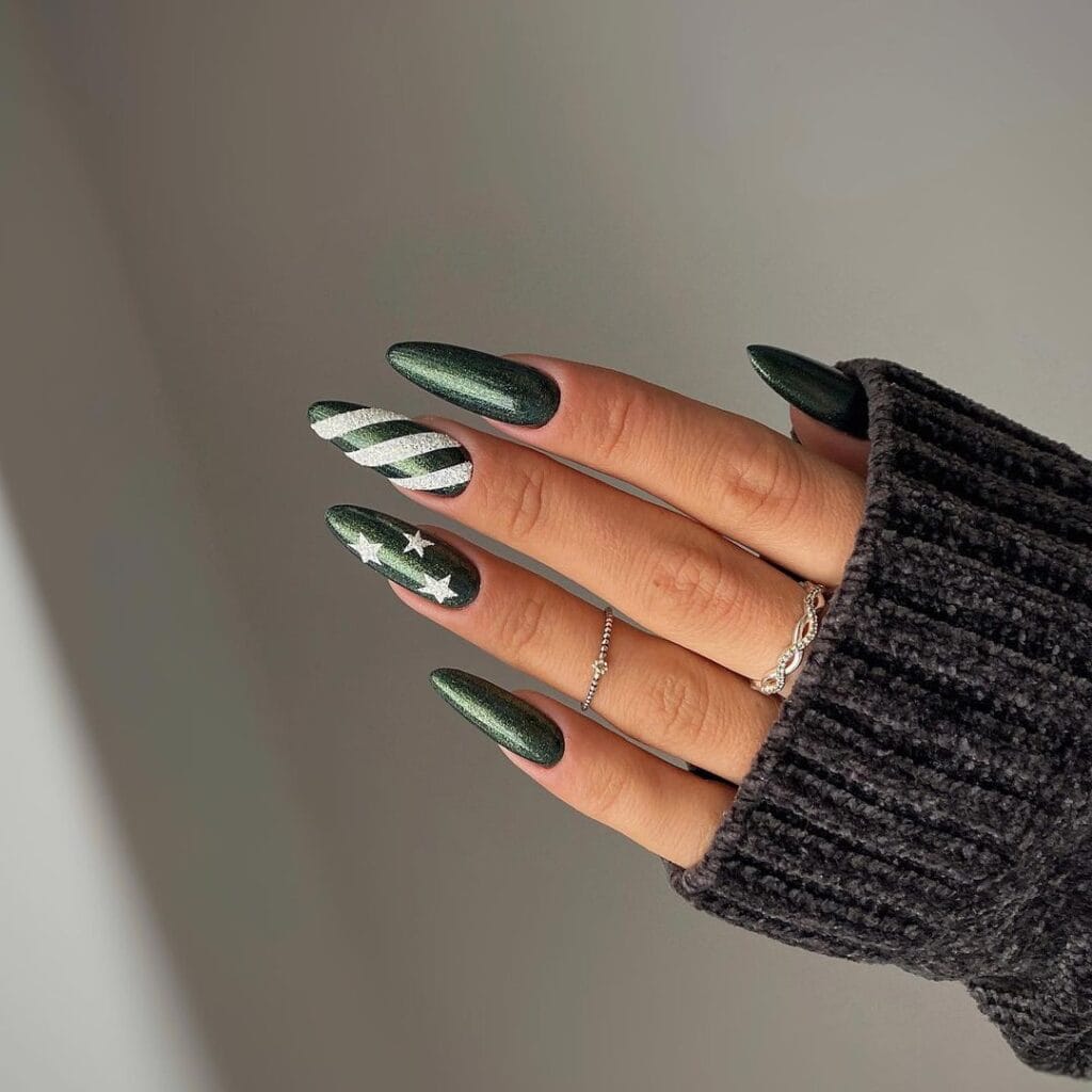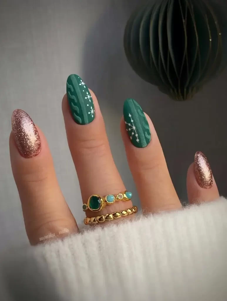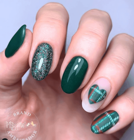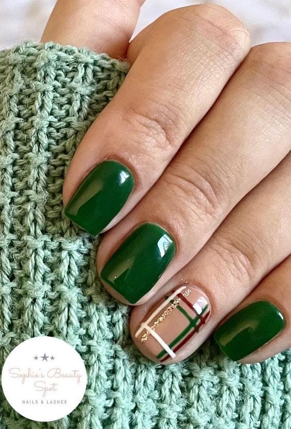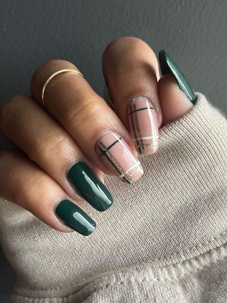 “Plaid Emerald green nails” embodies the essence of winter charm with its cozy plaid-inspired patterns. These nails are your ideal companions for a season of warmth and style.