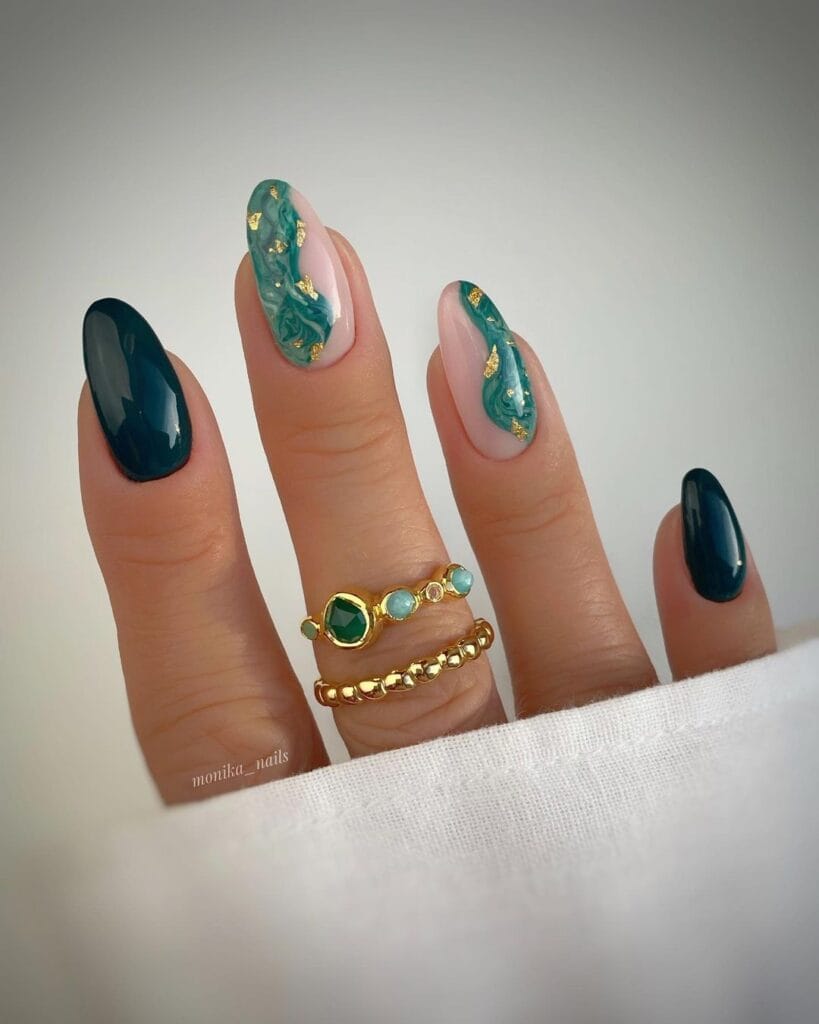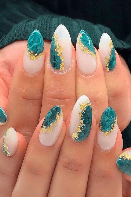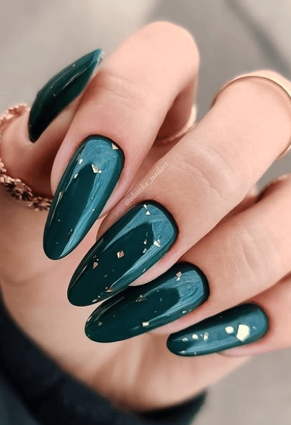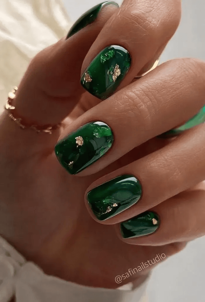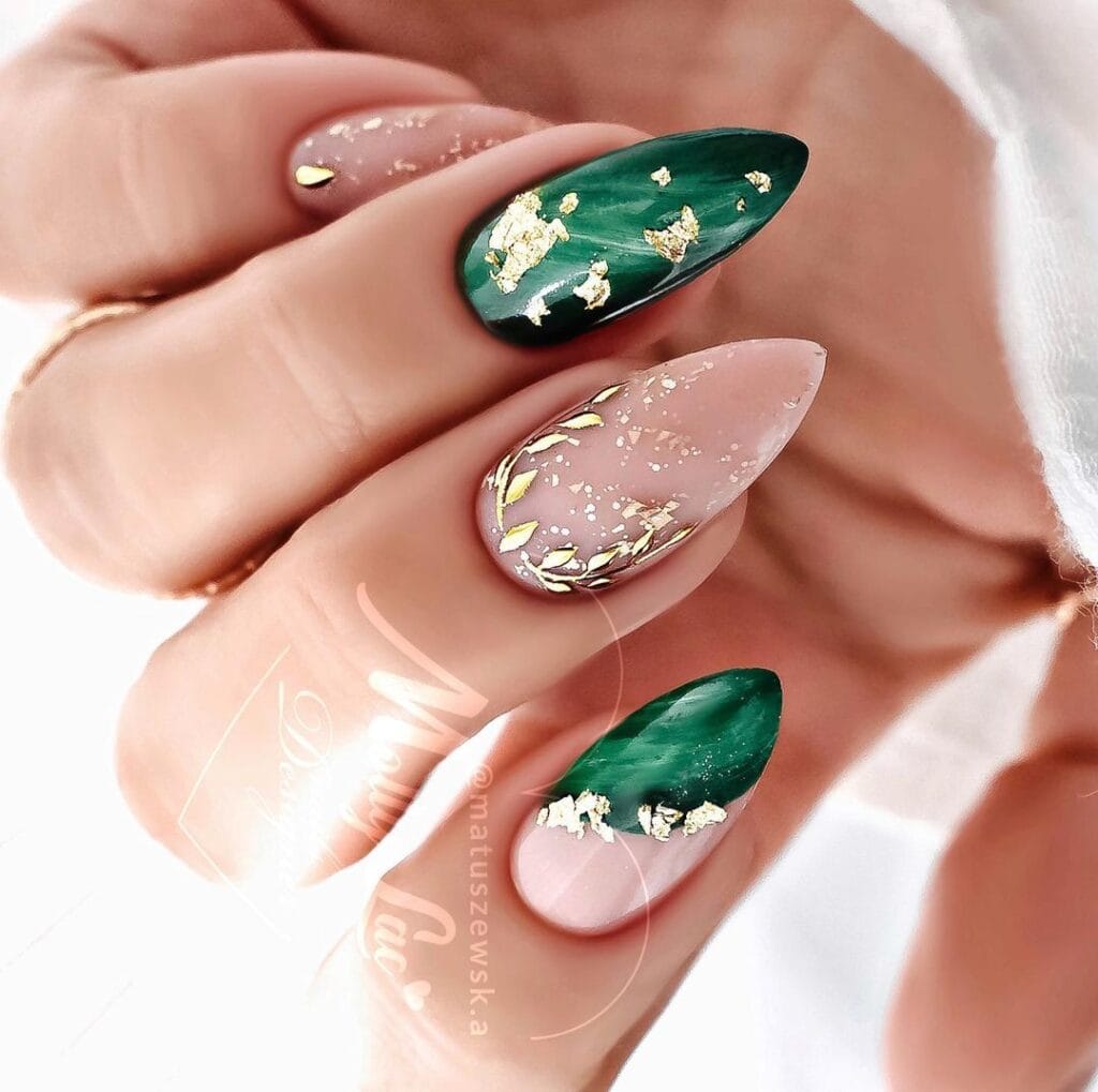 5. Gilded Glamour: Elevate Your Emerald Nails with Golden Foil