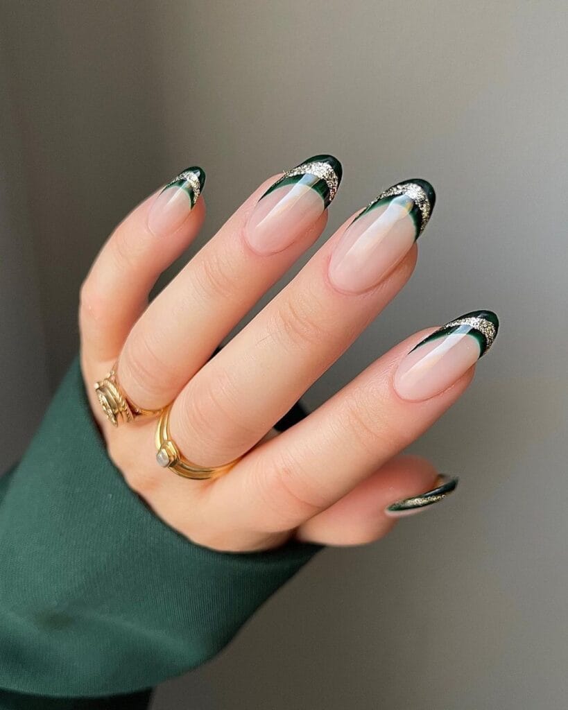 Why embrace the ordinary when you can dive headfirst into the enchantment of shimmering green nails? These nails boast dazzling glitters, iridescent finishes, or stunning holographic effects. With every gesture, your emerald green nails will awaken, shimmering and exuding an irresistible allure that’s impossible to ignore.