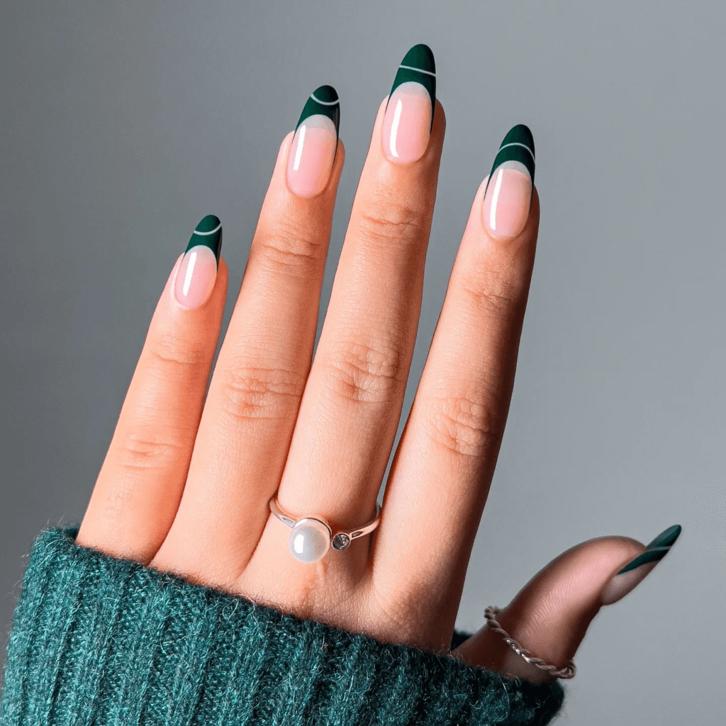 If you’re yearning for a dash of sophistication and elegance, look no further than these emerald green French tips. This modern twist on a classic manicure seamlessly blends the timeless appeal of French nails with the enchantment of emerald green.