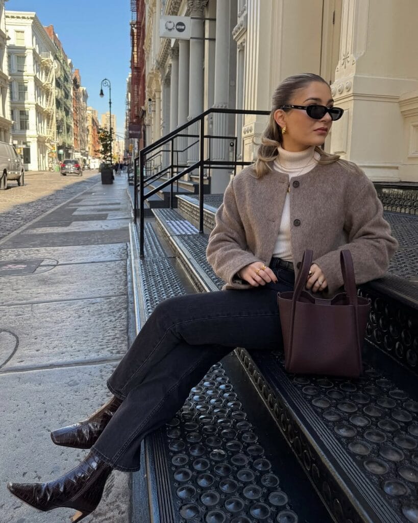 Whether you’re keeping it casual with jeans and a knit sweater or dressing things up with a sleek skirt and boots, the key is to blend warmth with style.