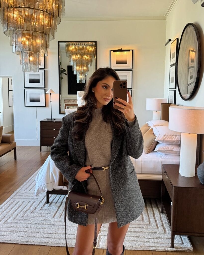 3. Sophisticated Wool Coat Over Soft Knit Dress