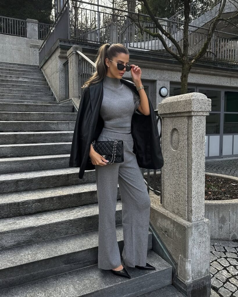 32. Soft Grey Knit Set with Black Blazer
