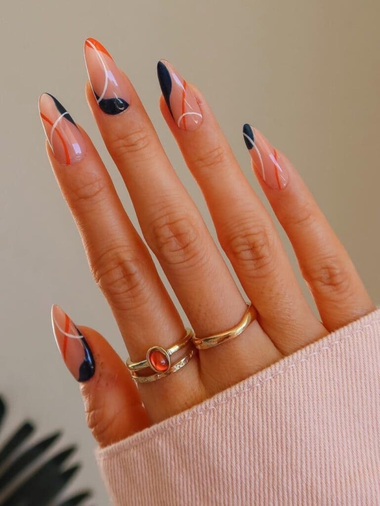 Embrace the graceful beauty of fall with swirling nail designs.