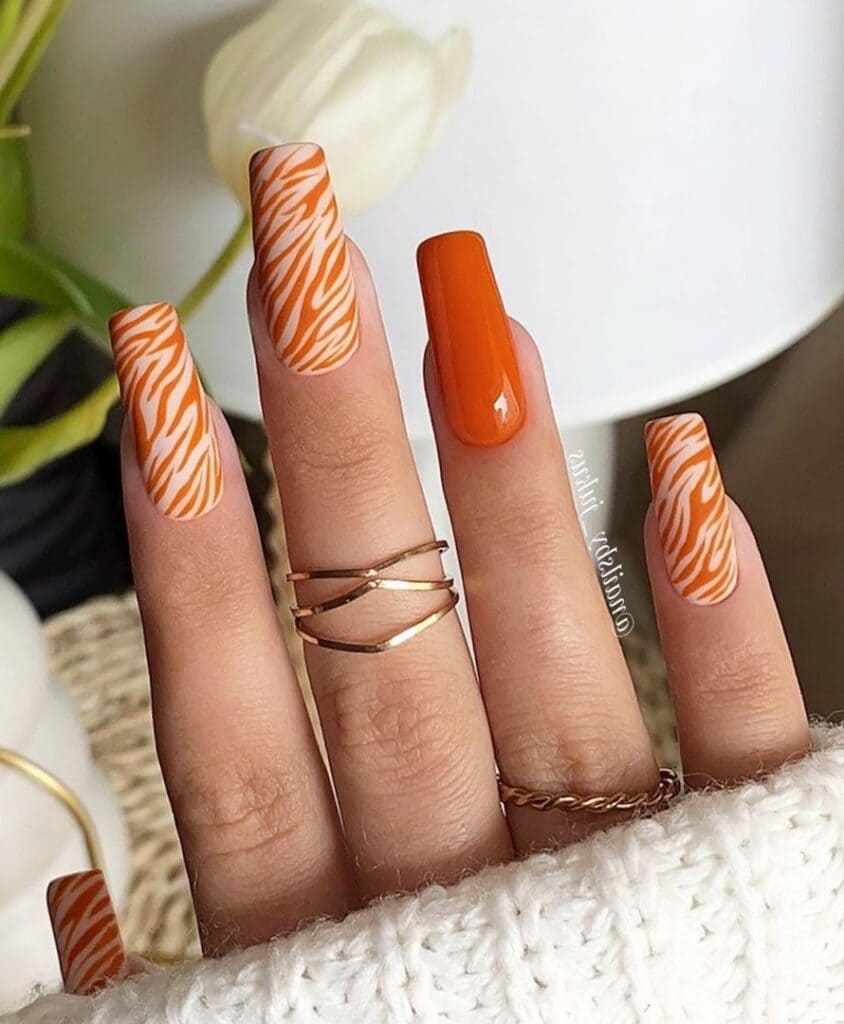 Infuse your nails with the vibrant hues of autumn by opting for orange shades.