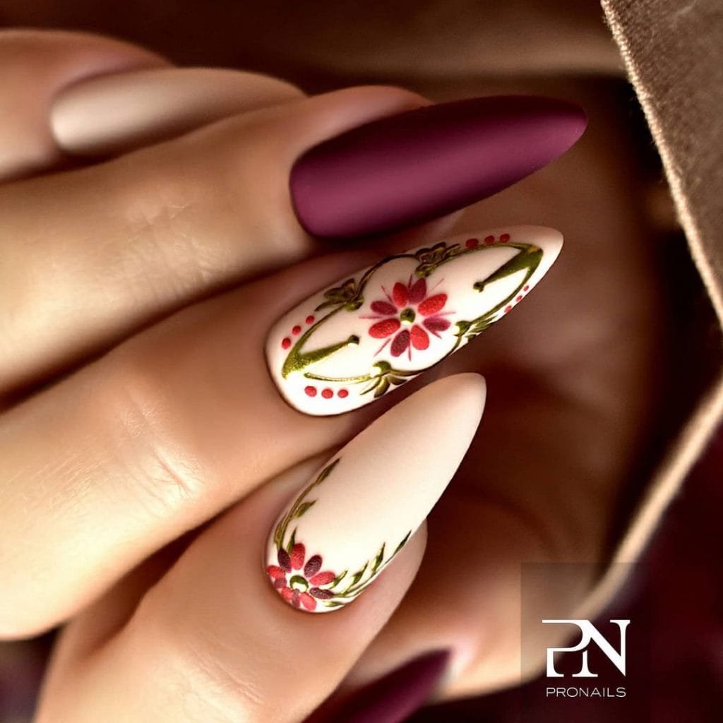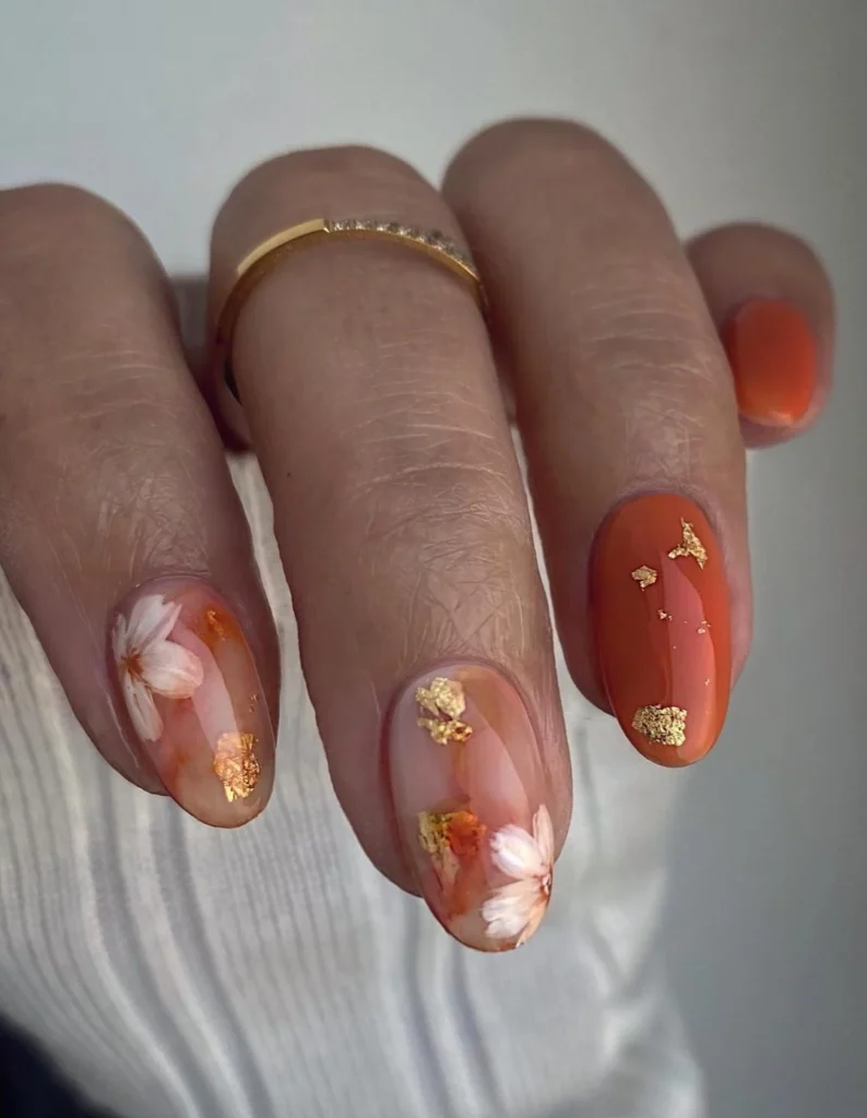 Embrace the charm of fall with nail designs inspired by autumn flowers.
