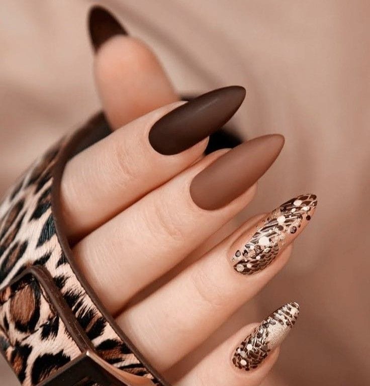 This earthy hue complements the season’s palette and adds a subtle yet stylish element to your fall nail repertoire, capturing the essence of nature’s changing colors.