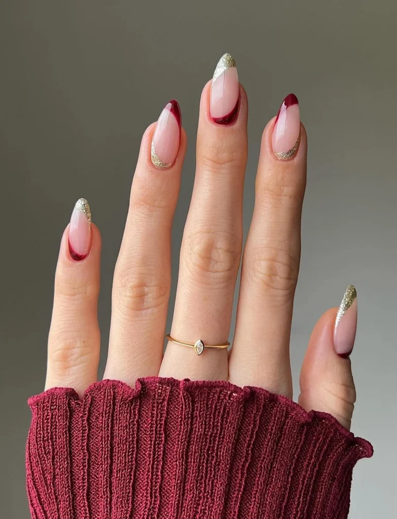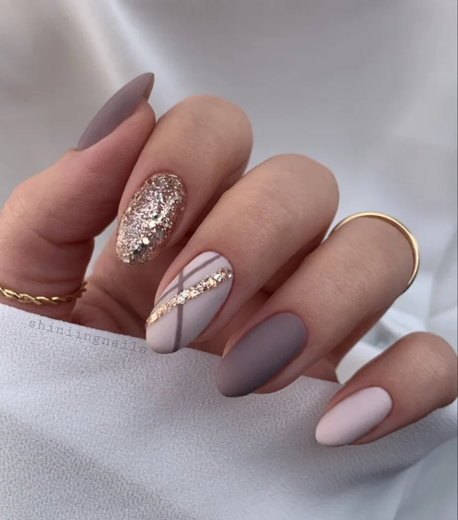 Whether you opt for glitter accents or full-on shimmer, these nails add a touch of glamour to your seasonal ensemble, perfect for festive gatherings and cozy evenings.