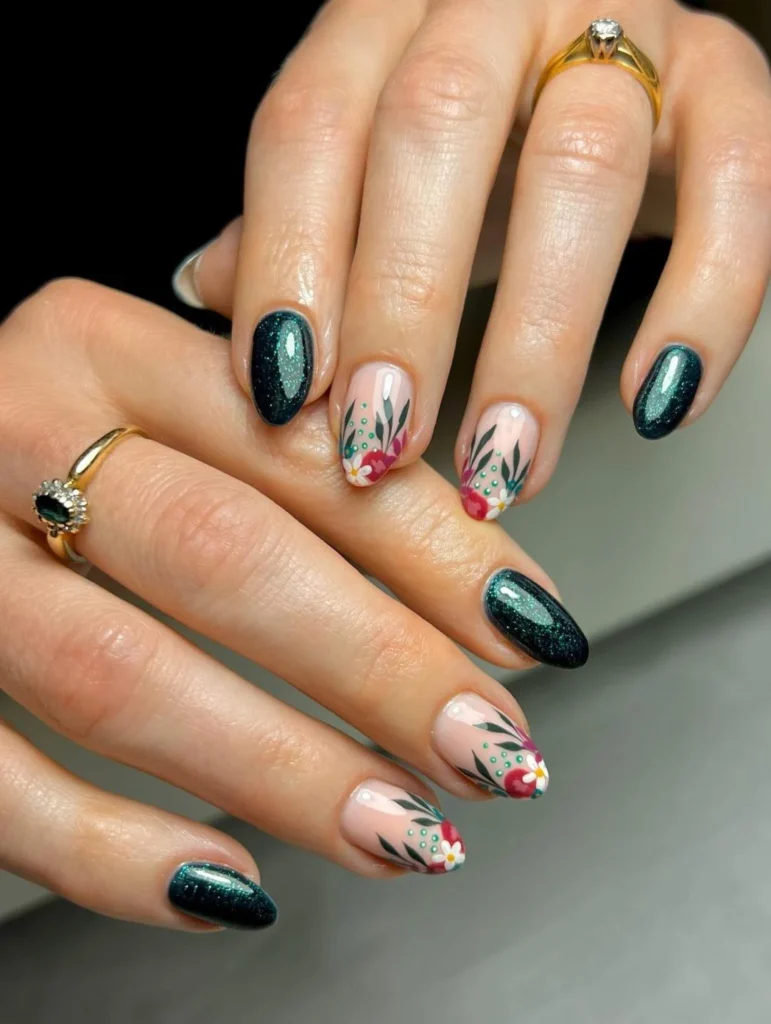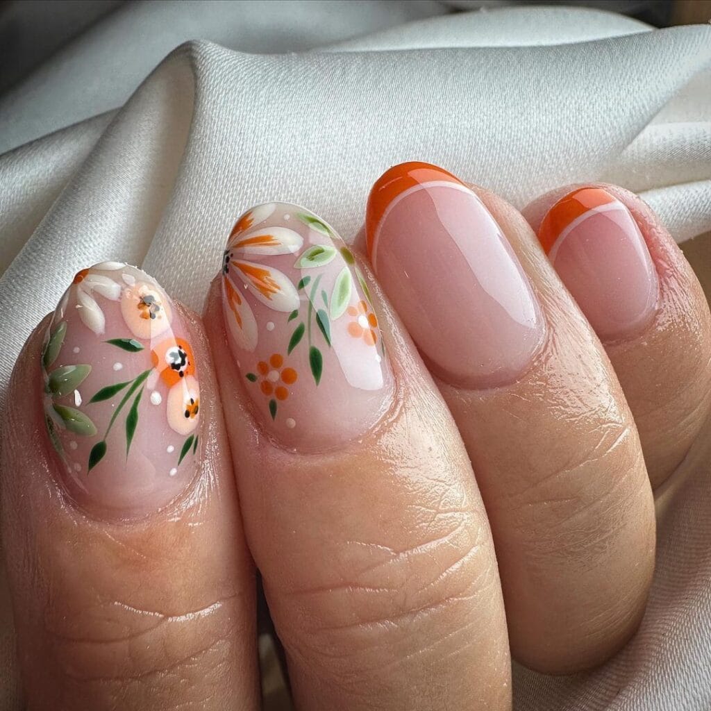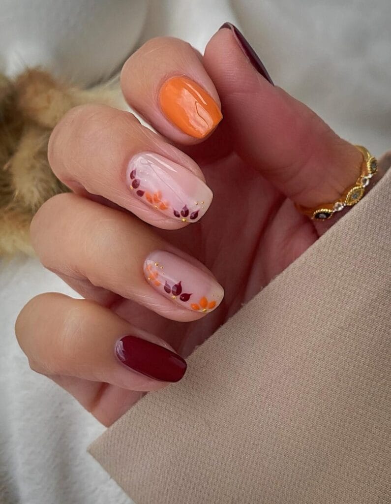 Think rich hues like deep reds, oranges, and yellows, adorned with delicate floral patterns that bring a touch of seasonal beauty to your fingertips.