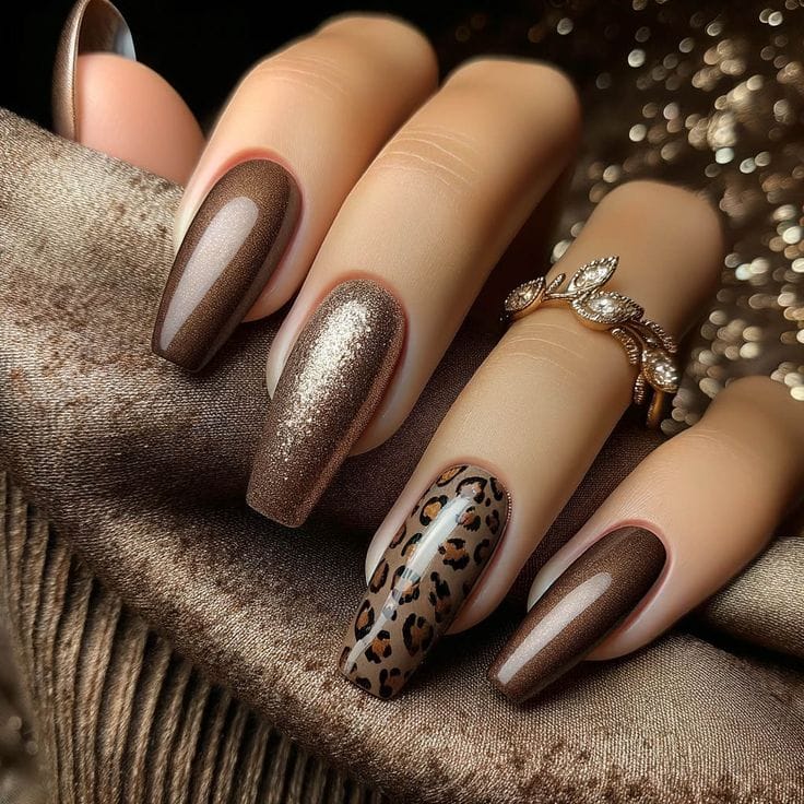 Make a bold statement with animal print designs on your fall nails.