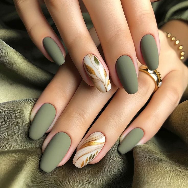 7. Earthy Elegance: Embracing Olive Green for Your Fall Nails