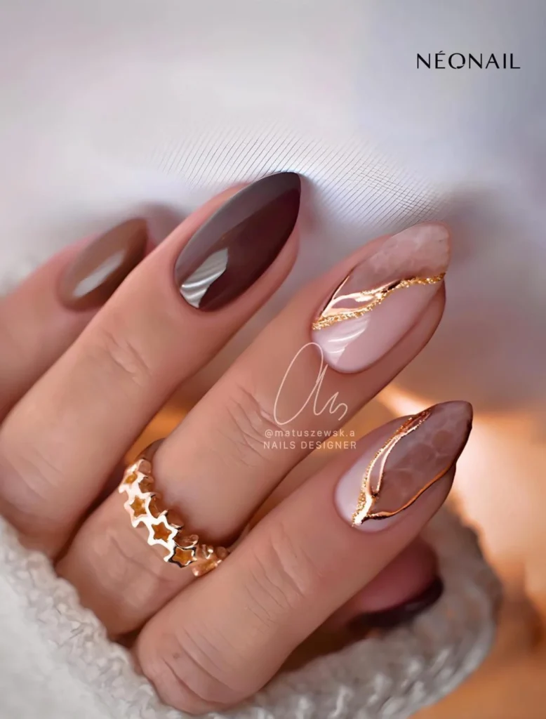 Infuse your fall nails with a touch of gold for a luxurious and elegant look.