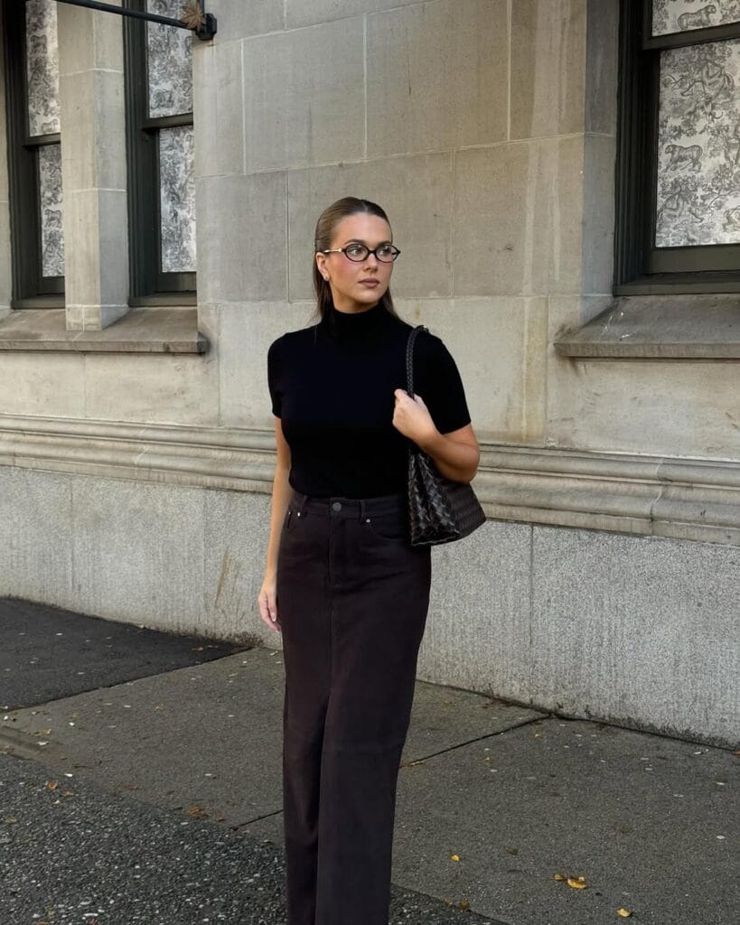 @ fleurraffanThis fall-ready look features a cozy, textured chocolate knit paired seamlessly with a fluid brown maxi skirt. Itās sophisticated, warm, and the tone-on-tone palette makes every stroll feel instantly fashion-forward.